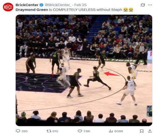 這場比賽追夢傷停對球隊的影響太大了,沒有他這一個整活兒核心與損壞空間的PF球隊的進攻變得非常流暢。2月23日勇士VS掘金,掘金一度領先8分在末節被勇士逆轉,那場比賽勇士隊也沒有追夢格林。