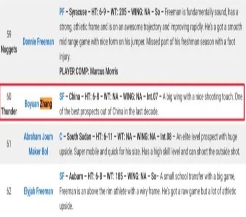 總第60順位!雷霆隊可能選中,又一個中國球員!