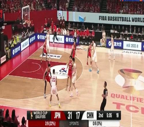 第二節日本男籃西田優大拿下8分,中國男籃趙睿拿下6分,半場結束日本男籃47-33領先中國男籃