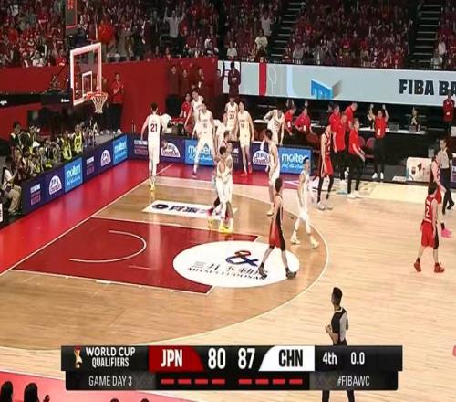 比賽還剩1分鐘,廖三寧突破上籃命中,拿到個(gè)人第16分,中國(guó)男籃領(lǐng)先10分,留給日本男籃的時(shí)間不多了。