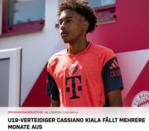 體育播報2月26日宣 拜仁官方宣布U19中衛基亞拉(Cassiano Kiala)腳踝受傷,將缺陣數月。這名17歲小將在代表德國U17國家隊參加阿爾加夫杯時受傷,并已成功接受手術。