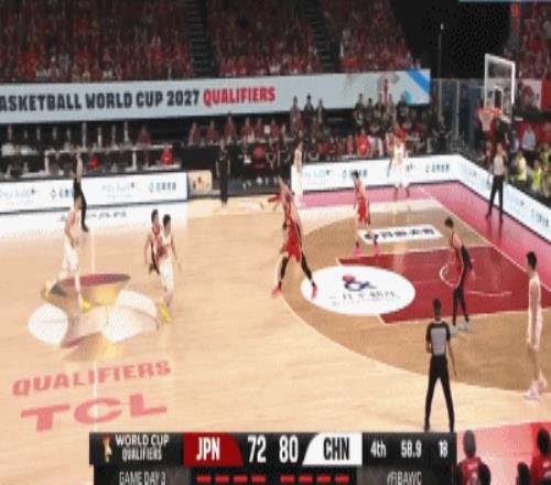 比賽最后7.3秒,廖三寧兩罰不中,但是胡金秋搶到籃板球后用一記扣籃為中國(guó)男籃鎖定了勝局,最后時(shí)刻給了日本男籃4.6秒的比賽時(shí)間。