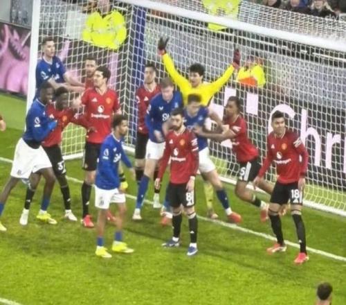 埃弗頓的身體對抗能力很強,屢屢通過定位球或者長傳空當,把球一次次送到拉門斯頭頂,在小禁區內。雖然他的對手和隊友在身邊推推搡搡,爭搶位置,有時候還會「隔山打牛」,撞擊到拉門斯。然而,曼聯門將無所畏懼,要么把球接下,要么一拳將之打到沒有威脅的區域。