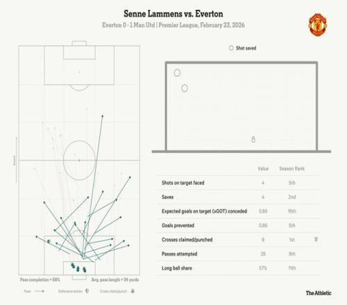拉門斯成功實現了零封,這是他在卡里克帶隊6場比賽里的第3次,超過此前魯本·阿莫林執教期間16場的2次不失球。