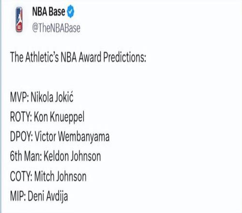 TA預測六大獎項:約基奇MVP克努佩爾最佳新秀馬刺或成最大贏家