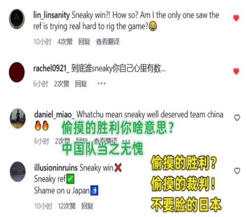 可以看到網(wǎng)友們的回復(fù)直接:“這是偷來的勝利嗎?我只看到了這是一個(gè)真正的勝利。”后面網(wǎng)友評論:“中國隊(duì)贏的問心無愧。”、“偷來的勝利?不,偷來的裁判!”、“日本隊(duì)不要臉面,到底誰才是小偷,你自己心里清楚。”、“看過這場比賽都知道,中國隊(duì)從日本和裁判手里搶走了勝利,這才符合實(shí)際情況。”、“你們安排了三個(gè)裁判,8打5都打不過,所以才氣急敗壞了嗎?”