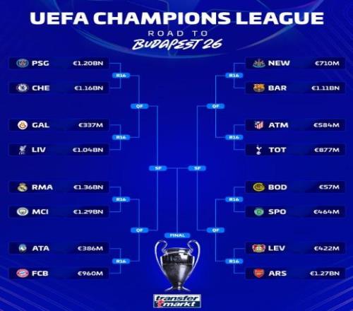 德轉列歐冠16強對陣身價