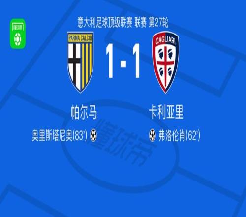 北京時間2月28日意大利足球頂級聯賽第27輪,帕爾馬主場迎來卡利亞里的挑戰。比賽中,卡利亞里球員塞巴斯蒂亞諾-埃斯波西托助攻弗洛倫肖完成破門,隨后帕爾馬的奧里斯塔尼奧打入一球。最終兩隊1-1握手言和。