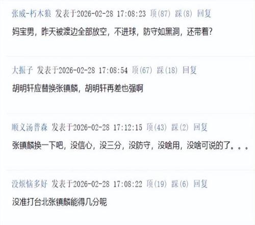 ——張鎮(zhèn)麟換一下吧,沒信心,沒三分,沒防守,沒啥用,沒啥可說的了