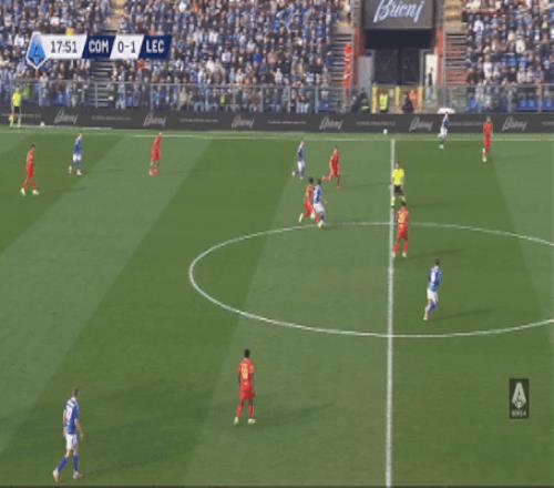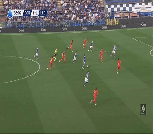 僅僅過了9分鐘,又是一次精準配合。達庫尼亞送出助攻,肯普夫魚躍沖頂再下一城,科莫3-1!短短半小時,從落后到領先兩球,法布雷加斯的球隊完成氣勢上的碾壓,上半場結束時,萊切已經被打懵。
