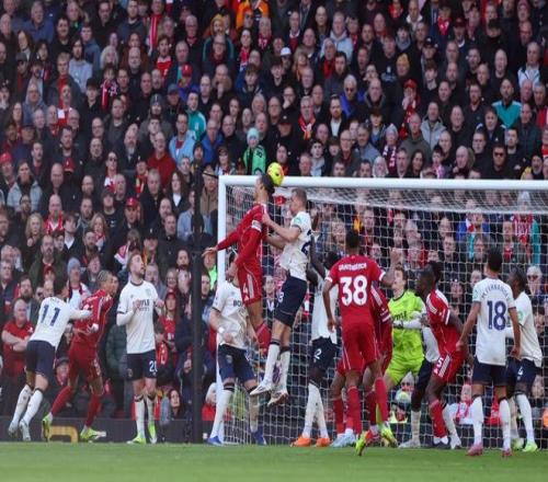 第42分鐘,薩拉赫右路推進(jìn)橫敲,索博斯洛伊假射真?zhèn)鳎;倏说们蚩圻^防守近距離勁射,馬夫羅帕諾斯舍身堵槍眼完成解圍;不過隨后薩拉赫開出角球,埃基蒂克后門柱擺渡,麥卡利斯特不停球外腳背抽射再進(jìn)一球,3:0!上半場利物浦拿到了7次角球機(jī)會(huì),便收獲了3粒進(jìn)球;這是利物浦自去年四月對陣熱刺以來,首次在英超上半場打入三球。