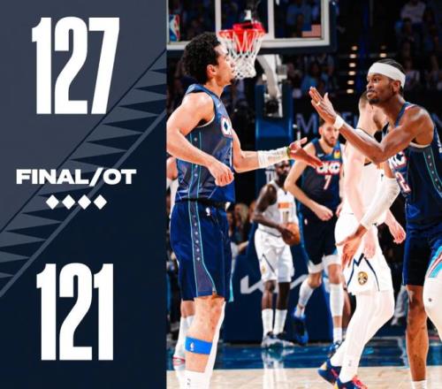 NBA常規(guī)賽繼續(xù)進(jìn)行,丹佛掘金隊(duì)昨天對陣俄克拉荷馬城雷霆隊(duì),他們通過一場加時(shí)大戰(zhàn),以121比127輸給了雷霆隊(duì)。