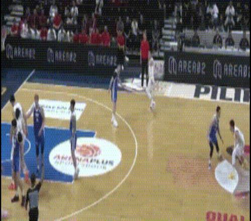 張鎮麟上場,賀希寧下去休息。張鎮麟上場背對陳盈駿,馬上一個轉身投籃,命中。