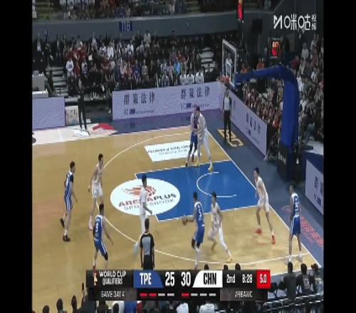 來到第二節:高柏鎧吃到第二次犯規。他是目前中國臺北隊里最有威脅的球員之一。廖三寧攻守兩端都打出高質量表現:可以封蓋,可以拿分: