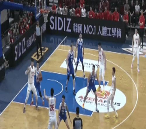 轉過來,陳盈駿也盯防首鋼隊友趙睿。中國臺北的小快靈特點很明顯。趙睿兩罰兩中,4-4!