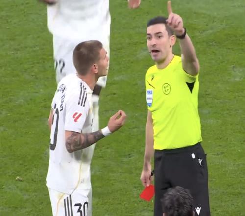 傷停補(bǔ)時(shí)階段,馬斯坦托諾由于對判罰不滿,怒噴裁判,被紅牌罰下場。之后赫塔費(fèi)球員利索在裁判鳴哨后踢走皮球,兩黃變一紅離場。最終,皇馬0-1不敵赫塔費(fèi)。比賽爭議不斷,赫塔費(fèi)隊(duì)共吃到6張黃牌以及1張紅牌,皇馬4黃1紅,賽后兩隊(duì)都對裁判的判罰感到不滿意。