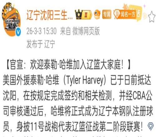 對于遼寧男籃來說,這個窗口期可以說是非常關鍵,畢竟目前他們只排名第12的位置,烏戈利用這段時間進行了戰術的演練,同時球隊方面也對外援進行了更換,遼寧男籃官方宣布,上賽季在上海男籃效力的哈維正式加盟。