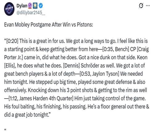 這樣一來,兩隊(duì)在本賽季常規(guī)賽階段4場正面對(duì)決全部結(jié)束,大比分戰(zhàn)成2-2平,但從具體情況來看,騎士隊(duì)明顯占據(jù)優(yōu)勢(shì),哈登加盟帶來的影響肉眼可見,同時(shí)一眾奇兵自我救贖同樣值得夸贊。