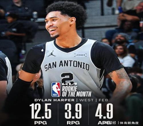 至于最佳新秀,哈珀單月場均貢獻12.5分、3.9個籃板以及4.9次助攻。乍一看,這數據似乎平平無奇,與東部同獲此殊榮的克努佩爾相比,更是略顯遜色。克場均能轟下21.5命中4.5記三分,三分命中率高達48.5%。然而,無奈西部新秀中表現突出者寥寥,且馬刺隊的戰績太過耀眼,這才讓哈珀脫穎而出。