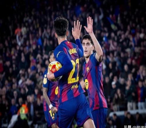 小將貝爾納爾再次拿下一分后巴薩隊員更為激動再拿一分就能扳平比分。