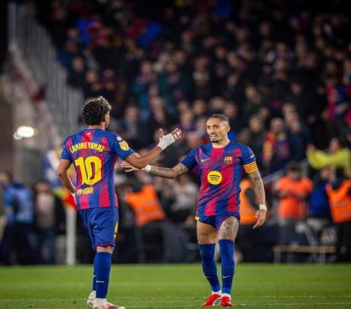 上半場的比賽中巴薩還拿到了點球的機會,拉菲尼亞罰球直接踢進為巴薩再次贏得一分。