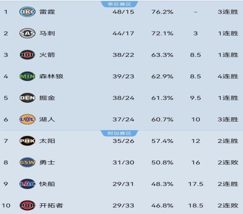本賽季至今,森林狼以39勝23負位列西部第四,勝場數與第三的火箭(38-22)打平,僅領先第六的湖人(37-24)1.5個勝場。
