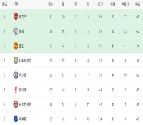 贏下這場比賽,意味著阿森納在聯賽取得一波3連勝。而同時間進行的另一場比賽,曼城意外被諾丁漢森林逼平,丟掉了2分。這兩場比賽的結果直接改變了爭冠格局。阿森納總積分達到67分,曼城總積分只有60分。阿森納足足領先曼城7分。雖然曼城少踢1輪,但在聯賽所剩無幾的情況下,想要擠掉阿森納奪冠,難度實在是太高了。
