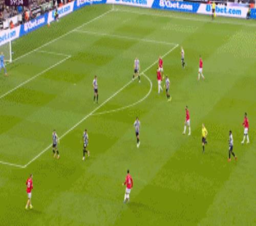 補時第8分鐘,B費右路定位球開到禁區(qū)前點卡塞米羅頭球破門,紐卡1-1曼聯(lián)。