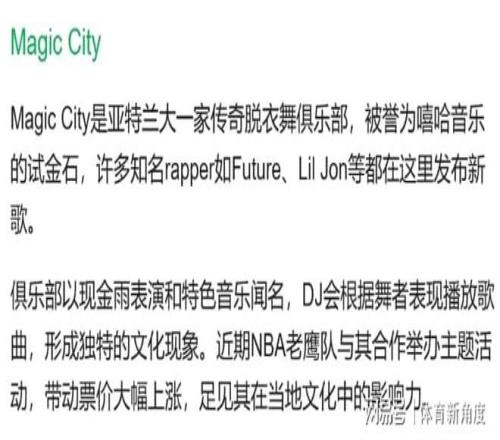 老鷹隊(duì)官方傳來(lái)重磅消息,3月16日那場(chǎng)對(duì)陣魔術(shù)的主場(chǎng)比賽,他們可是憋了個(gè)超級(jí)大招兒!他們把當(dāng)天命名為“Magic City Monday”(魔術(shù)城星期一),還和當(dāng)?shù)卮竺ΧΑ⒊錆M(mǎn)傳奇色彩的脫衣舞俱樂(lè)部Magic City搞起了聯(lián)動(dòng)。據(jù)說(shuō)啊,現(xiàn)場(chǎng)那表演精彩得不得了,就像一場(chǎng)視覺(jué)與聽(tīng)覺(jué)的盛而且呢,球隊(duì)還特意邀請(qǐng)了俱樂(lè)部里的成員來(lái)錄制播客,一起深入探討這家俱樂(lè)部對(duì)當(dāng)?shù)匚幕a(chǎn)生的巨大影響,這話(huà)題肯定超有料!