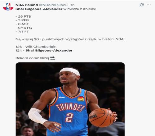 2.SGA連續60個客場拿到20+,雷霆隊史第一;