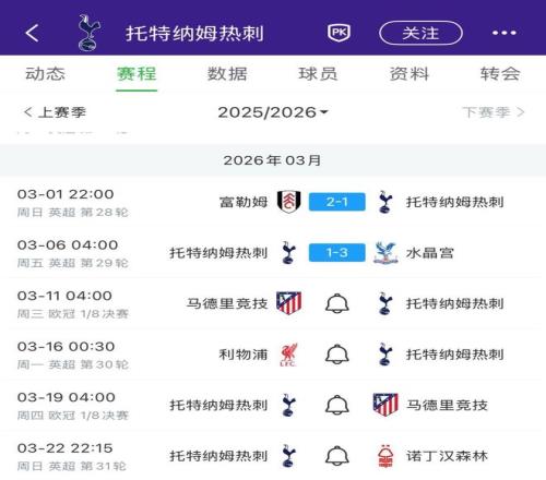 北京時(shí)間3月6日,英超第29輪,托特納姆熱刺1-3水晶宮。在本場(chǎng)比賽之后,熱刺將迎來(lái)一段艱難的賽程。