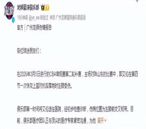 傷后俱樂部第一時(shí)間將艾倫送往醫(yī)院,經(jīng)初步檢查診斷,傷病位置為左膝前交叉韌帶。而郭艾倫本人深夜也自宣傷情:“在醫(yī)院出來了,前交叉韌帶斷了,今天知道電視里演的有的不對,人在最難過絕望的時(shí)候,不是一直哭,哭完是會(huì)笑的。”盡管遭受重創(chuàng),聽艾倫的口吻還保持著一絲樂觀的心態(tài),那就是除了哭還有笑。