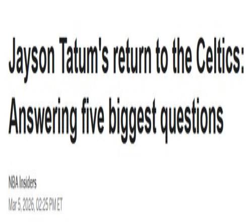 塔圖姆為何選擇現(xiàn)在復(fù)出?他的回歸將如何影響總冠軍爭奪?又會如何改變凱爾特人今年夏天的休賽期規(guī)劃?ESPN解答了關(guān)于這位2024年NBA總冠軍成員驚人復(fù)出的五大核心懸念。