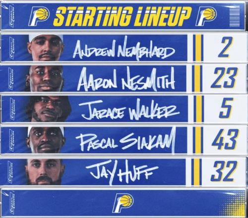 首發陣容方面,湖人隊這邊,詹姆斯(左肘挫傷、左腳關節炎)、艾頓(左膝酸痛)以及克萊伯(腰部拉傷)三人缺陣,雷迪克教練排出的首發五人組為:盧卡-東契奇、奧斯汀-里夫斯、馬庫斯-斯馬特、八村塁、海斯;步行者這邊,,首發陣容則為:內姆布哈德、內史密斯、沃克、西亞卡姆、杰-胡夫。
