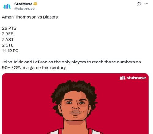 憑借這樣的表現(xiàn),阿門成為本世紀第三位以至少90%命中率砍下這一數(shù)據(jù)的球員,成功比肩詹姆斯與約基奇。