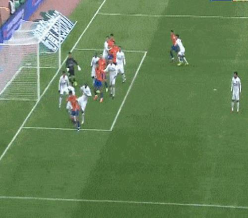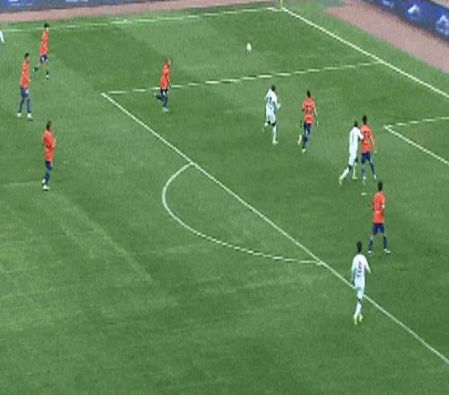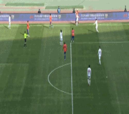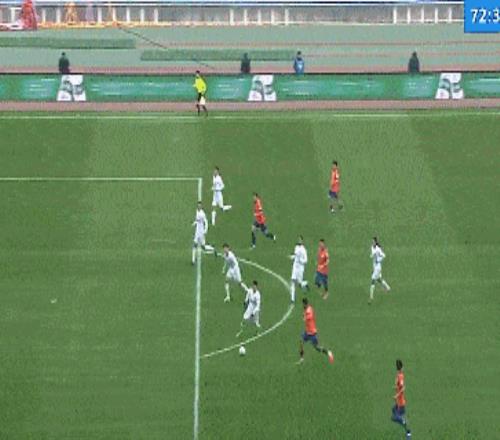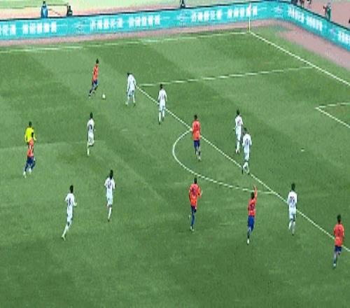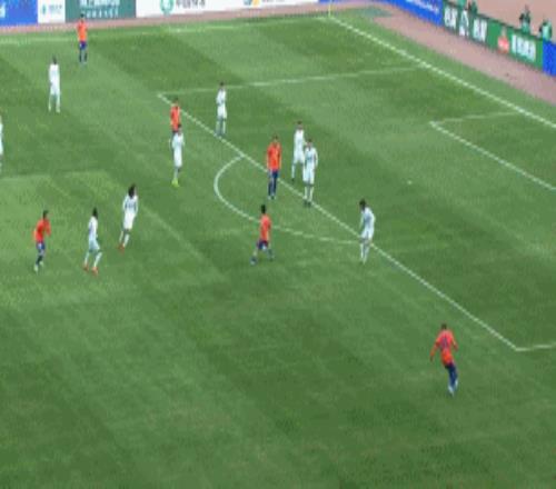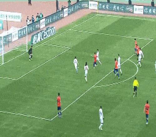 第73分鐘,克雷桑左路推射被擋,劉洋跟進大力抽射被韓镕澤擋出。