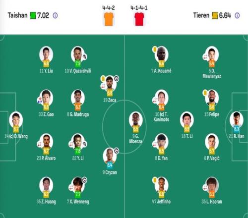 山東泰山首發(3-4-3)