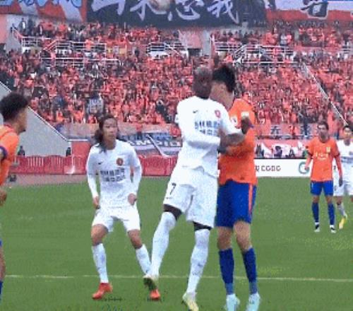 第33分鐘,泰山左路斜傳禁區,李浩然搶在李源一之前頭球解圍。