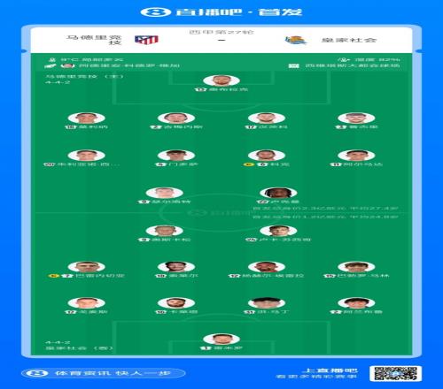 體育播報(bào)3月8日宣 西甲第27輪,馬德里競(jìng)技主場(chǎng)迎戰(zhàn)皇家社會(huì),賽前首發(fā)名單公布。
