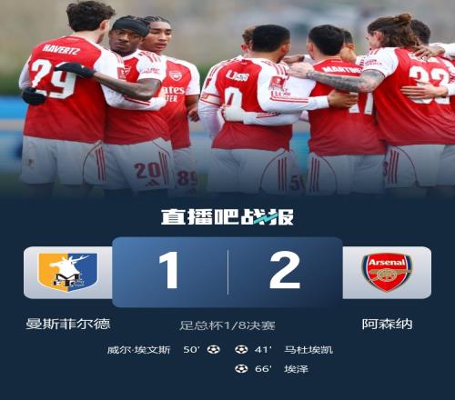 體育播報3月7日宣 北京時間3月7日20:15,足總杯16強阿森納挑戰(zhàn)曼斯菲爾德的比賽在菲爾德米爾球場進行,上半場16歲道曼開場失單刀,馬杜埃凱角球中柱,特羅薩德傷退,馬丁內利助攻馬杜埃凱抽射破門,半場結束,阿森納1-0曼斯菲爾德。下半場薩爾蒙失誤,埃文斯低射扳平比分,道曼抽射造險,埃澤爆射破門,最終阿森納2-1曼斯菲爾德晉級八強。