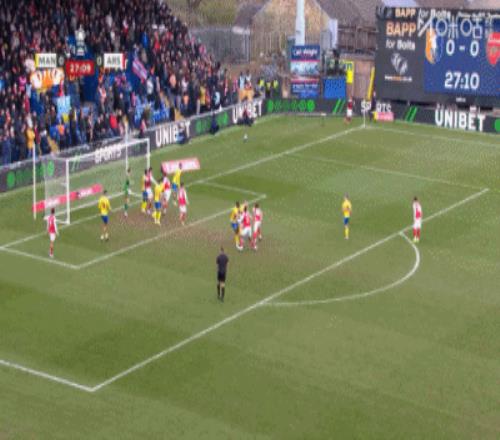 下半場補時6分鐘,曼斯菲爾德1-2阿森納。