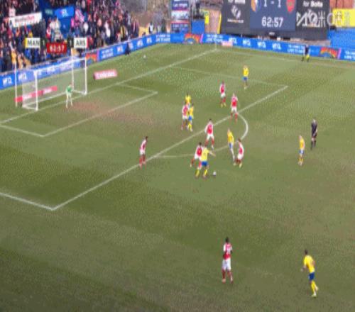 第65分鐘,阿森納再下一城!諾爾高弧頂直塞到點球點附近埃澤內切爆射破門,曼斯菲爾德1-2阿森納。↓