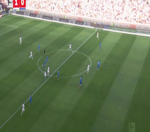第37分鐘,泰里耶助攻科法內(nèi)推射破門迅速扳平比分,勒沃庫森1-1