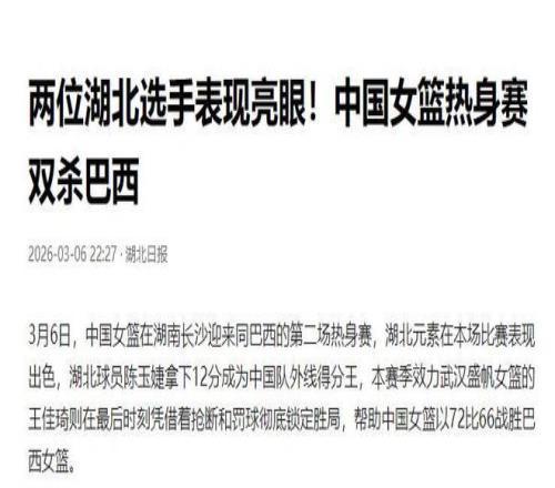 再次戰(zhàn)勝巴西隊,也說明了中國女籃的實力是毋容置疑的。