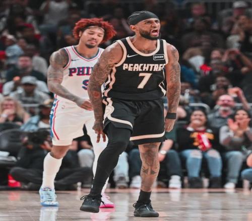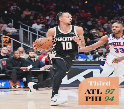 老鷹當家球星杰倫-約翰遜今天出戰39分鐘,投籃19中12,三分4中2,罰球9中9,狂轟35分10籃板7助攻2搶斷!本賽季面對76人,杰倫-約翰遜場均能轟下30分11籃板7.8助攻1.8搶斷。老鷹新援庫明加,因傷連續第二場缺席。