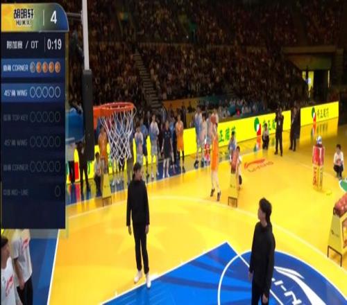 三分大賽決賽第二個打響,胡明軒、曾凌鉉、于米提參加。第一位出場的是胡明軒,他第二個、第五個點位全中,花球點位5中3,最終得分22分;第二位出場的是曾凌鉉,花球點位5中4,但最后一個點位只進2個,最終拿到21分;第三位出場的是于米提,他花球點位5中4,超遠三分轟進,最終成績22分,打平胡明軒進入加賽。