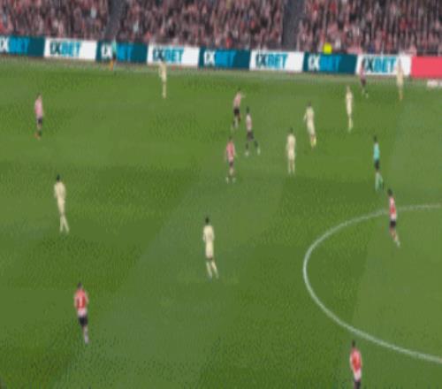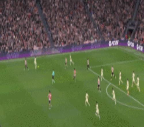 這一次其實挺典型的,當亞馬爾側翼持球,費蘭托雷斯原本在中路,不過他很聰明地繞到了后點,結果亞馬爾球過來之后,費蘭托雷斯左腳橫傳門前,險些造成烏龍球。