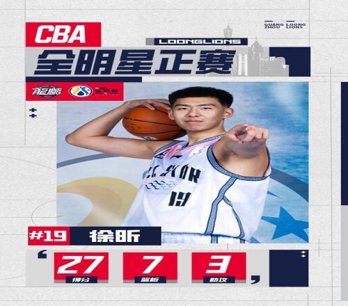 徐昕替補(bǔ)出戰(zhàn)全明星正賽,拿下27分7籃板3助攻,17投13中,效率驚人!幫助南區(qū)明星隊(duì)擊敗北區(qū),首次全明星之旅即閃耀全場!