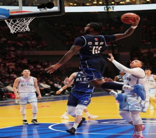 北區明星隊球員克里斯在比賽中扣籃。 新華社記者 孟永民 攝