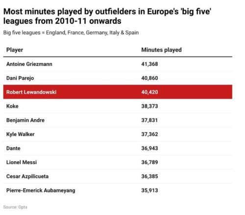 自2010年夏天他加盟多特蒙德以來,在歐洲五大聯(lián)賽中,只有兩名球員的出場(chǎng)時(shí)間比他更多:馬德里競(jìng)技前鋒安托萬-格里茲曼和瓦倫西亞中場(chǎng)丹尼-帕雷霍。